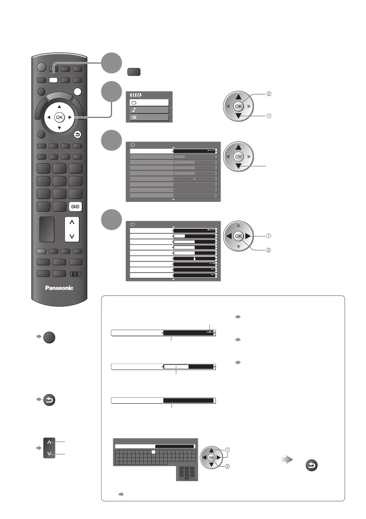 Various menus allow you to make settings for the picture, sound, and other functions.