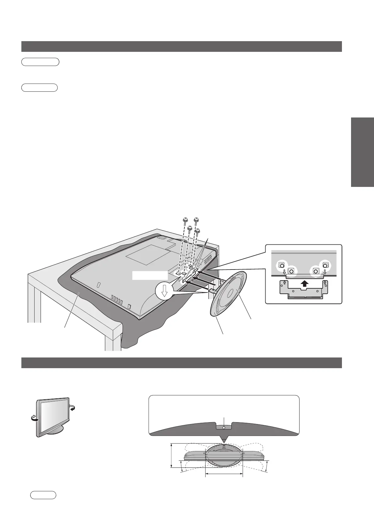 Ensure that the pedestal does not hang over the edge of the base even if the TV swivels to the full rotation range. ●