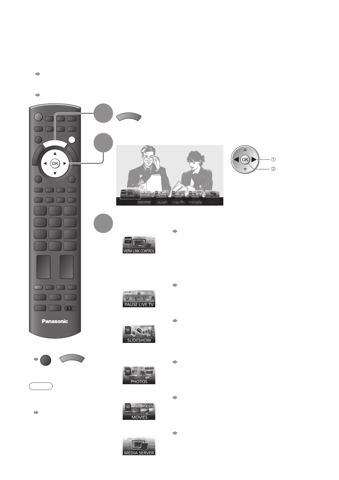 For “VIERA Link Control”, “Pause Live TV” and “Media Server” functions to operate correctly, ensure the ●