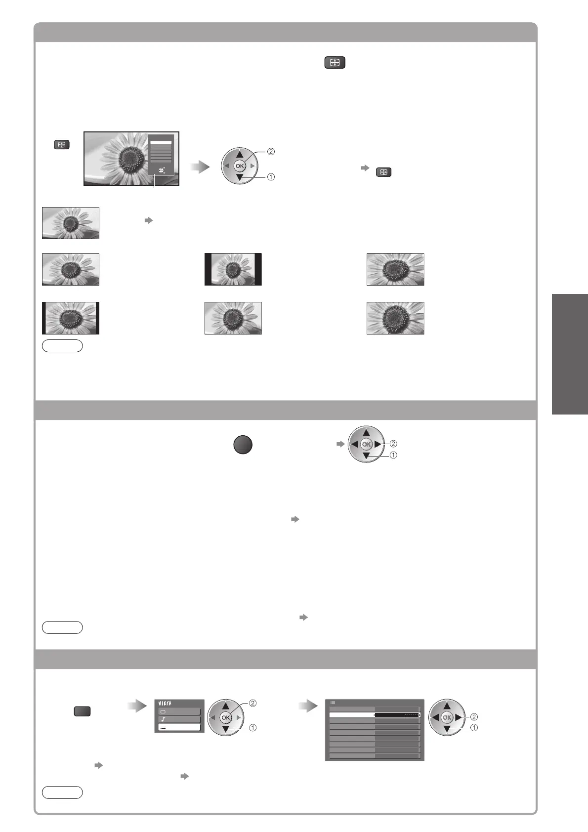 Aspect mode can be memorized separately for SD (Standard definition) and HD (High definition) signals.●