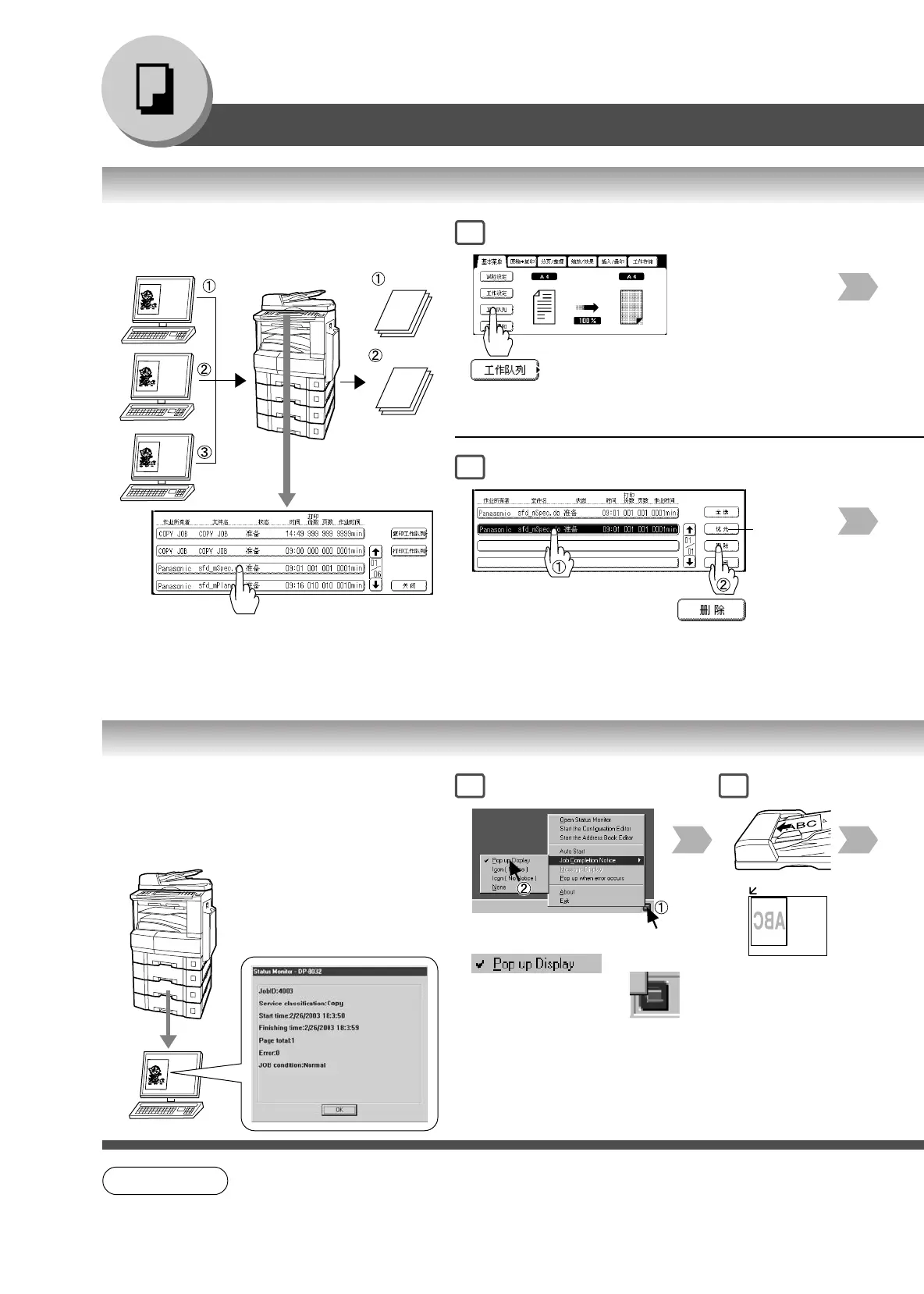 当复印作业完成时,通过电脑上的弹出画面显示作