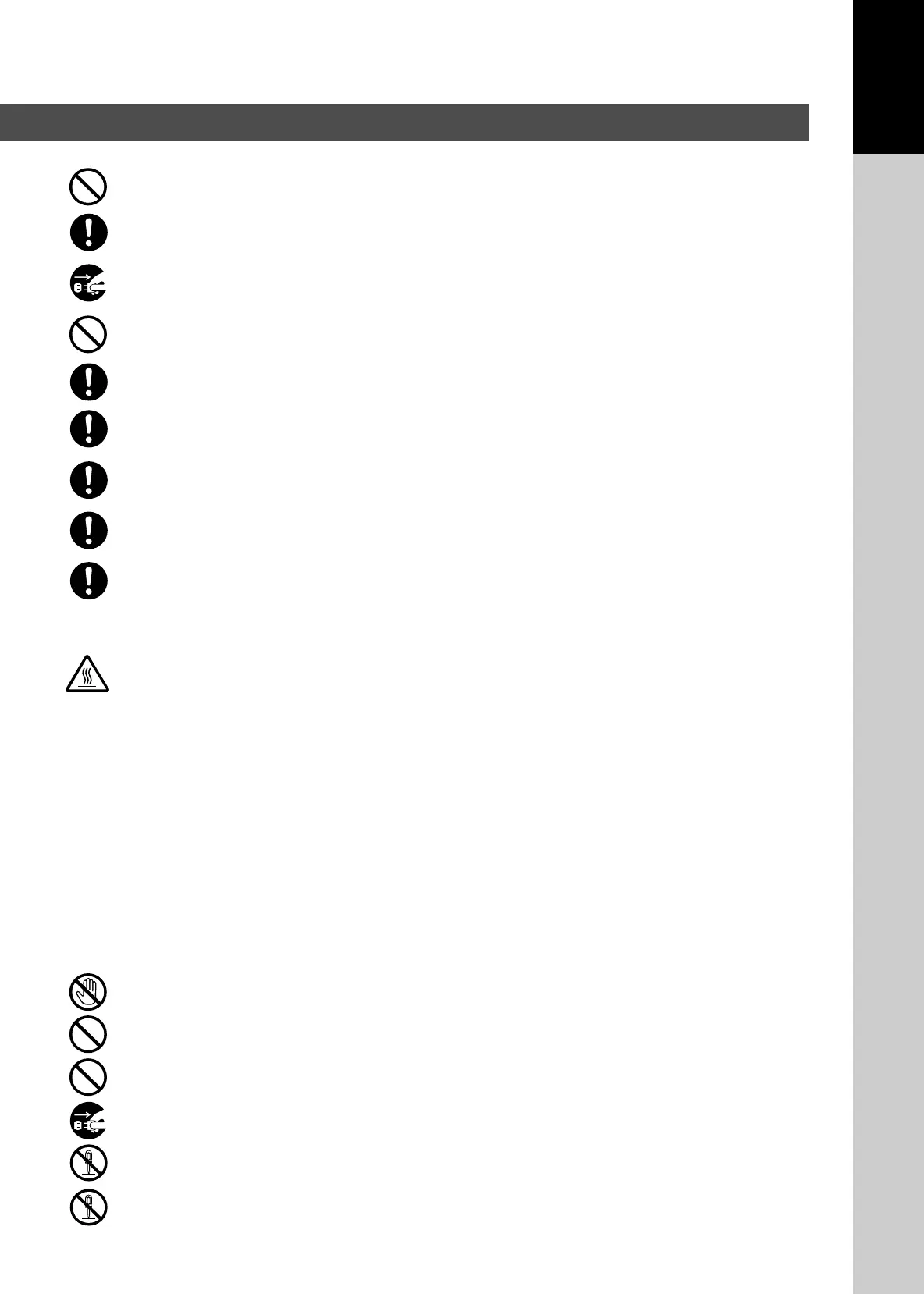 如果“操作说明书”中未特别指明,切勿打开或拆下用螺丝固定好的机盖。否则,高压元件会导致电击。
