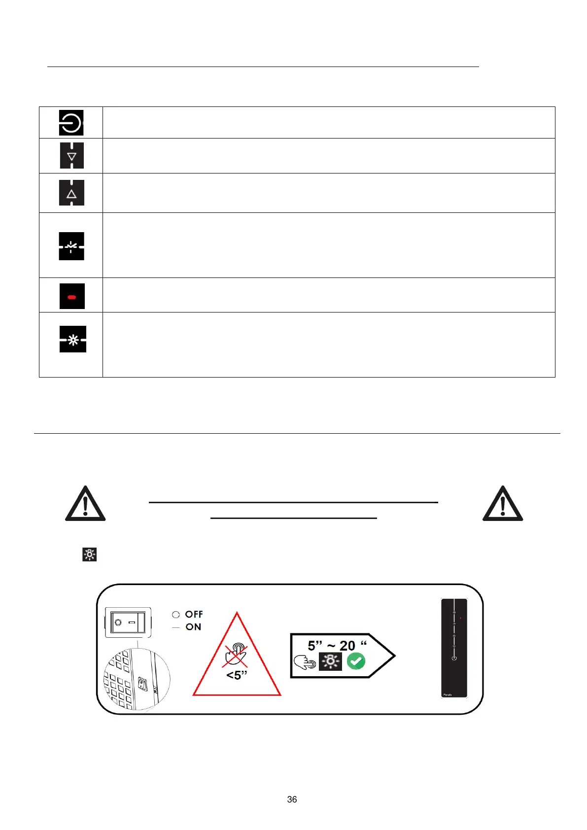 ON/OFF, Pressione este símbolo para ligar o motor e pressione novamente para desligá-lo.