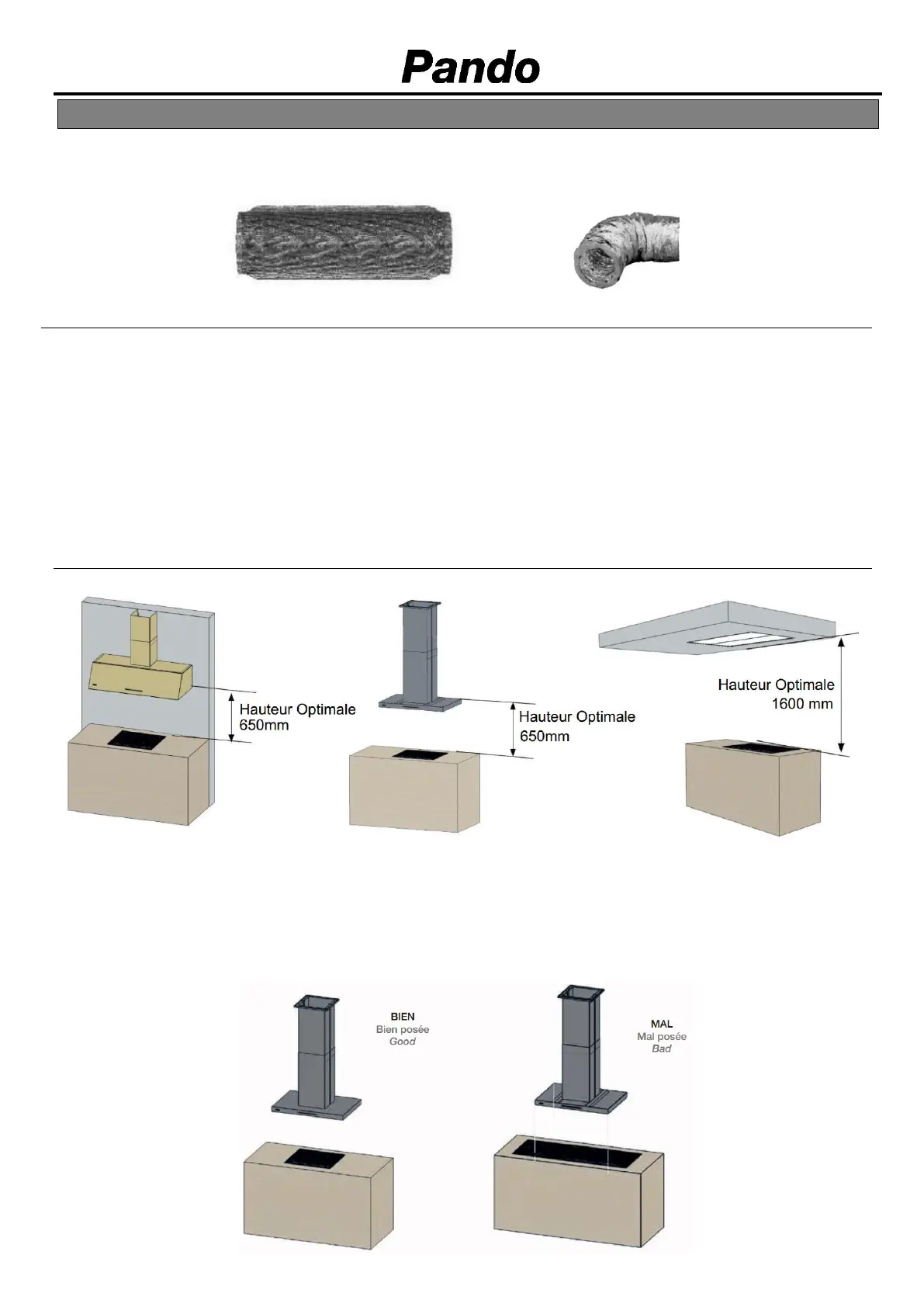 gaz, la hauteur minimale de séparation entre le plan de cuisson et la base de la hotte est de 65cm