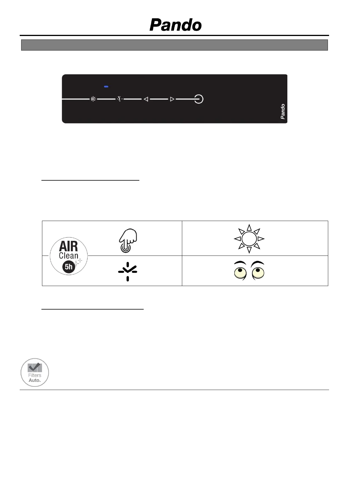 • Activación Pando AIR Clean: Con la campana apagada, mantenemos pulsada la tecla