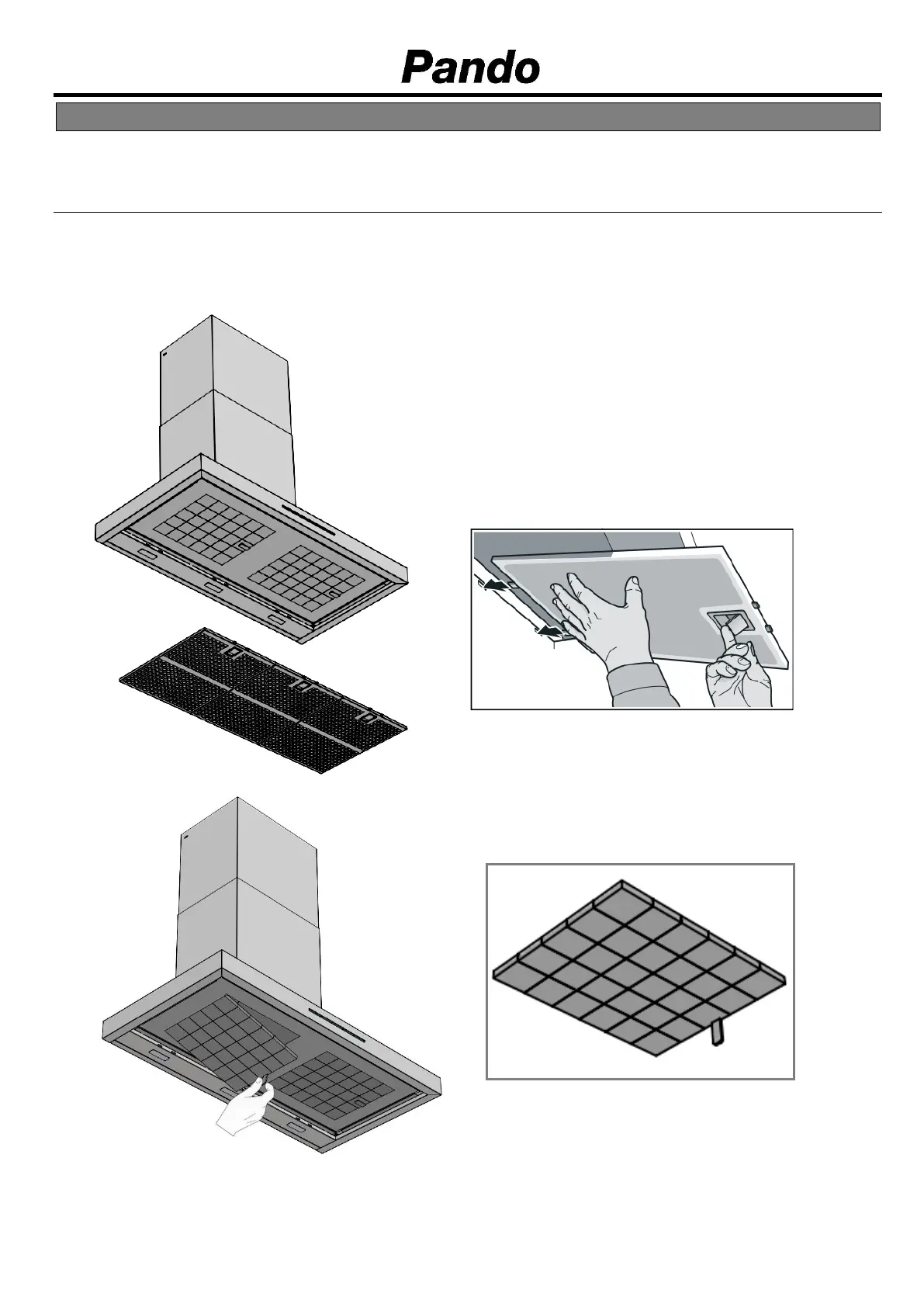2. FILTRUL CU CĂRBUNE ACTIV (FCA). Se instalează în tava FCA. Nu demontaţi tava FCA.