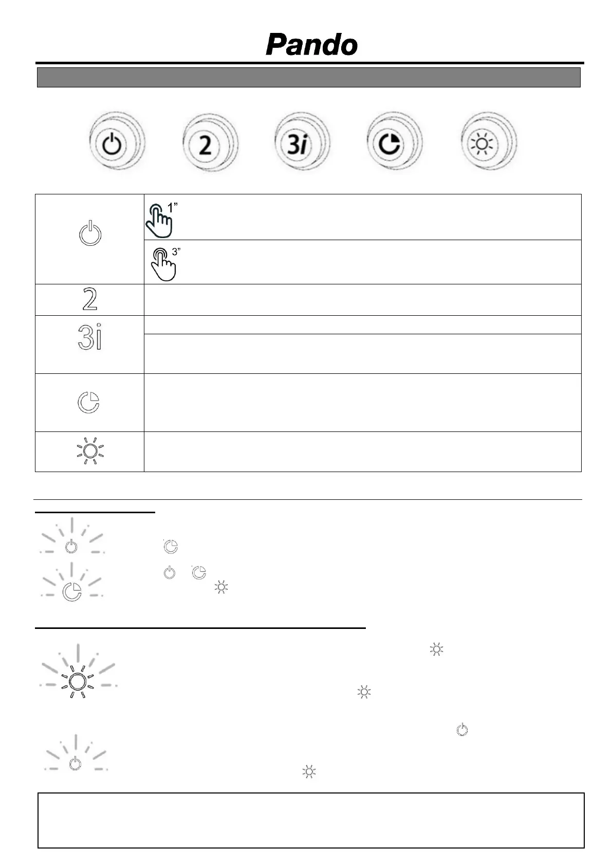 Выключение вытяжки = Удерживайте палец на символе в течение около 3 секунд.