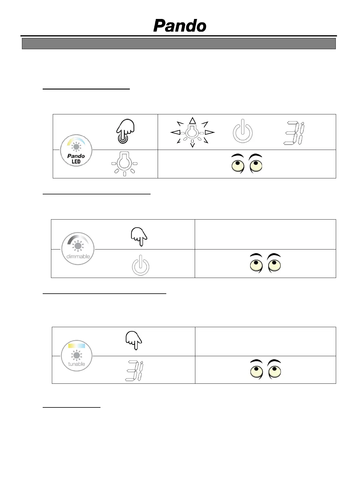7. 2.1. Pando LED. Setting mode with touch invisible control panel.