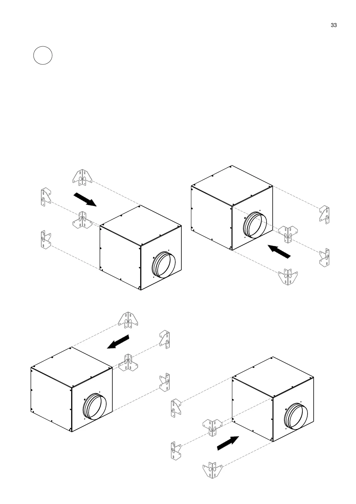 colha o lado da caixa onde pretende fixar o motor. Coloque os 4 ângulos de fixação