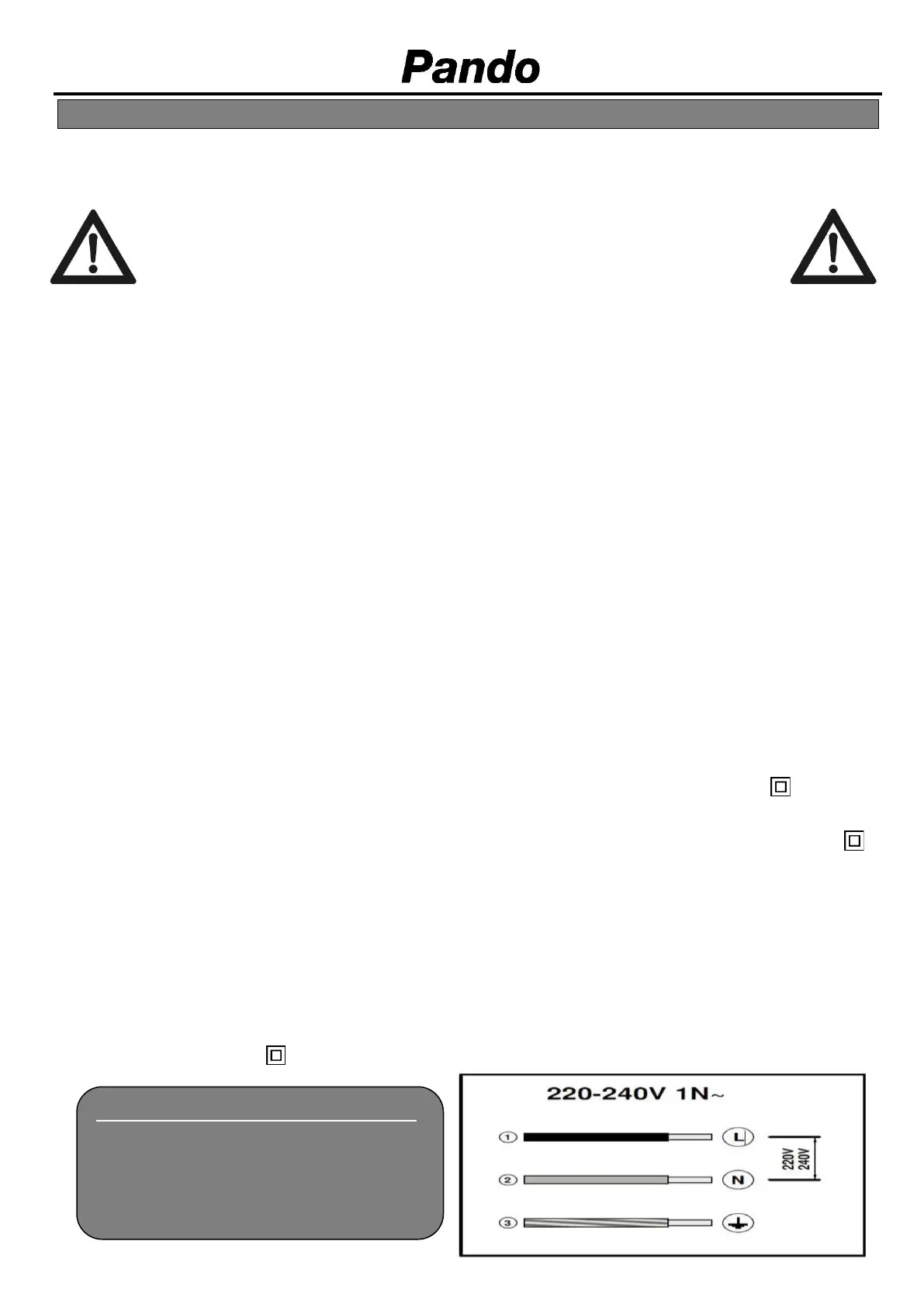 correcte. Pando dégage toute responsabilité en cas de non respect de cette norme (sauf appareils de classe