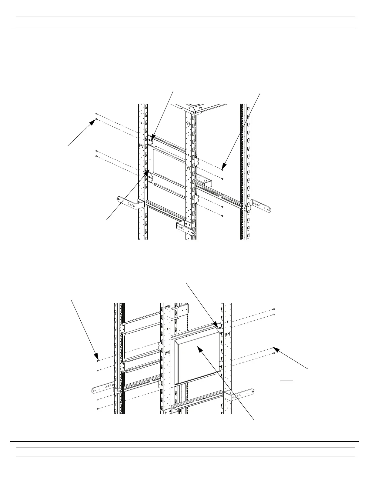 Cabinet. Align the Left Hand Bracket with the desired rack space, fasten the bracket using (4) #12-24 in the front rail and (4) in the rear rail.