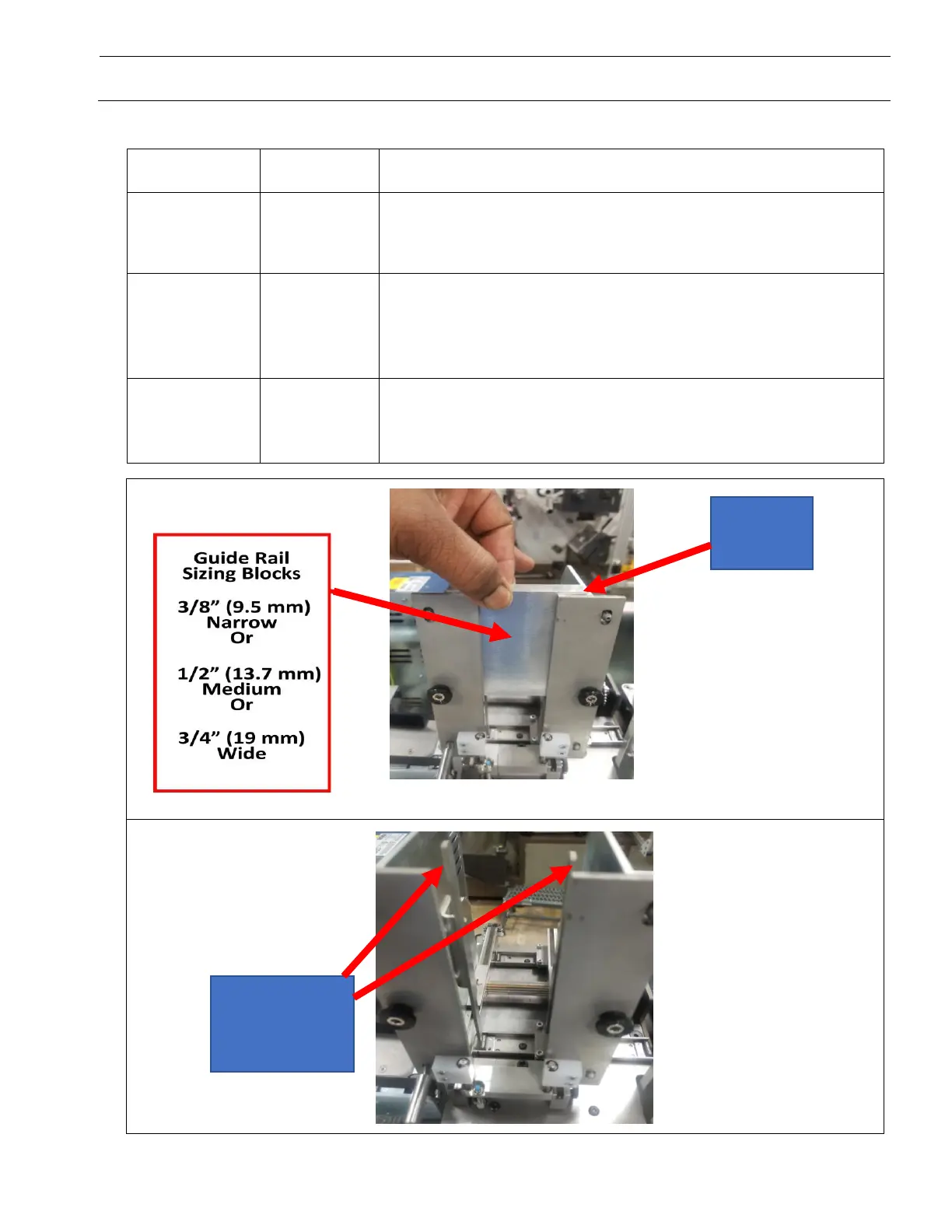 wrench. Remove guide rail sizing block. See [Figure 16 and