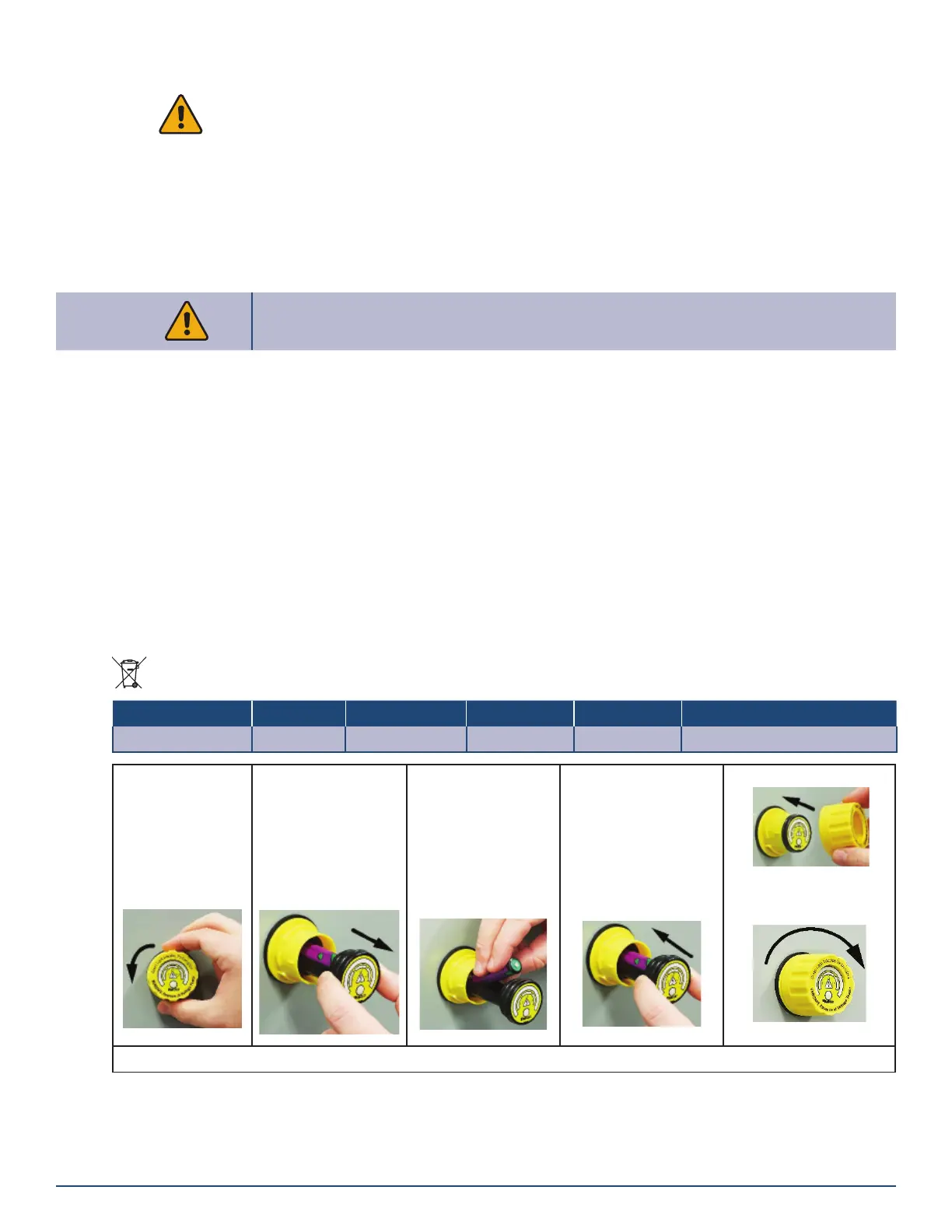 指示器模块由电池供电,其中包含一个锂电池,这种电池有引发火灾、爆炸和严重烧伤的风险。切勿将电池粉碎、
