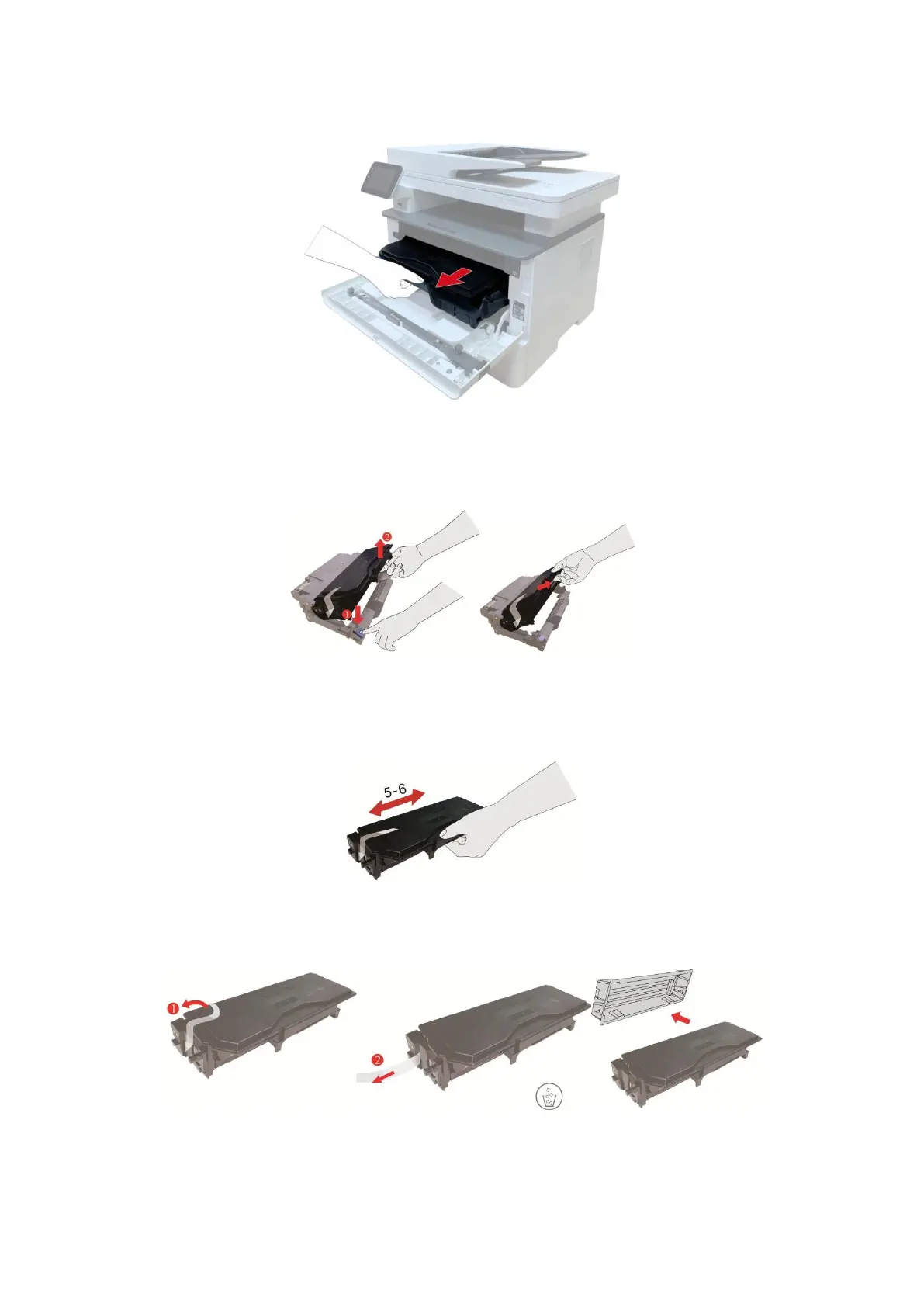 4. Open the package of the new toner cartridge and hold the toner cartridge handle to shake it left