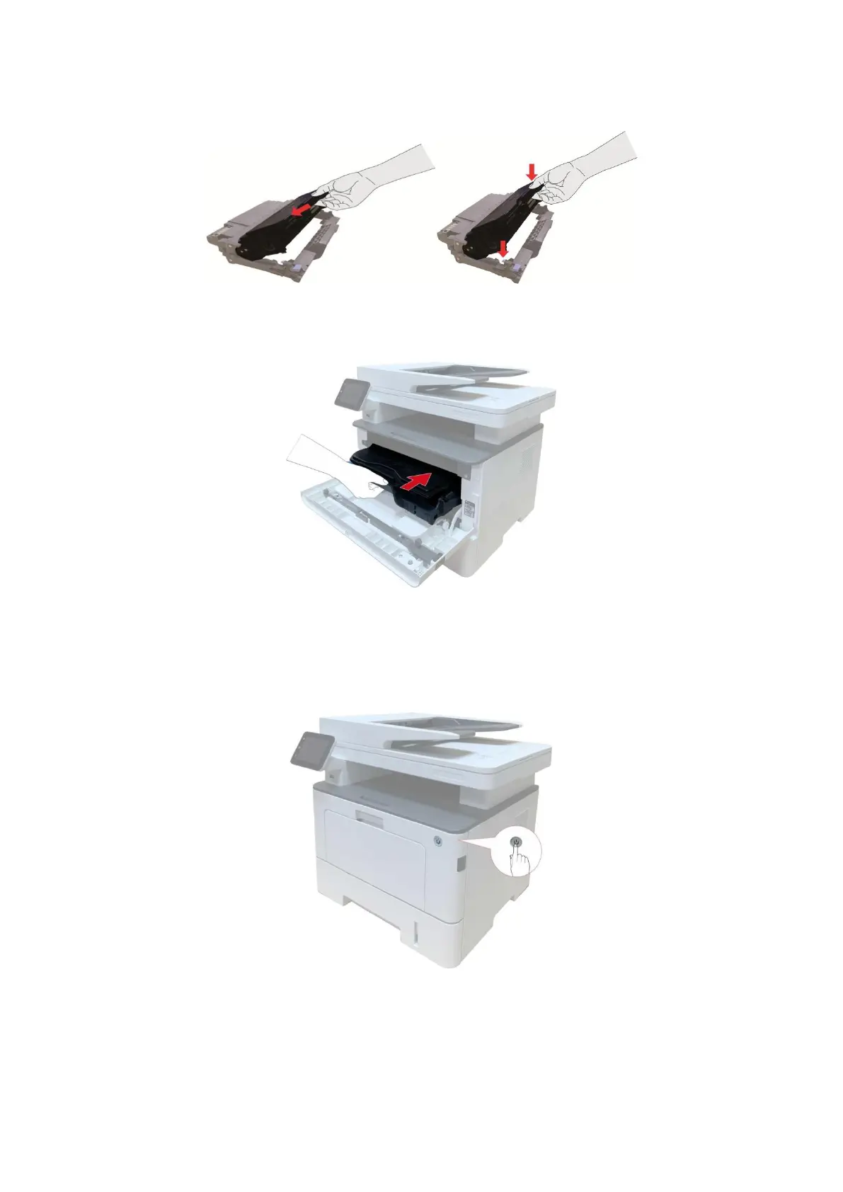 7. Take the drum component with toner cartridge installed and install it inside the printer along the