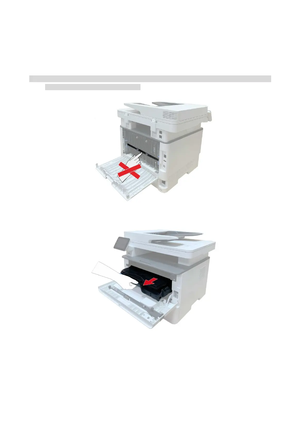 Note:• When papers jammed in fuser unit are taken out, please pay attention and do not touch the shaded