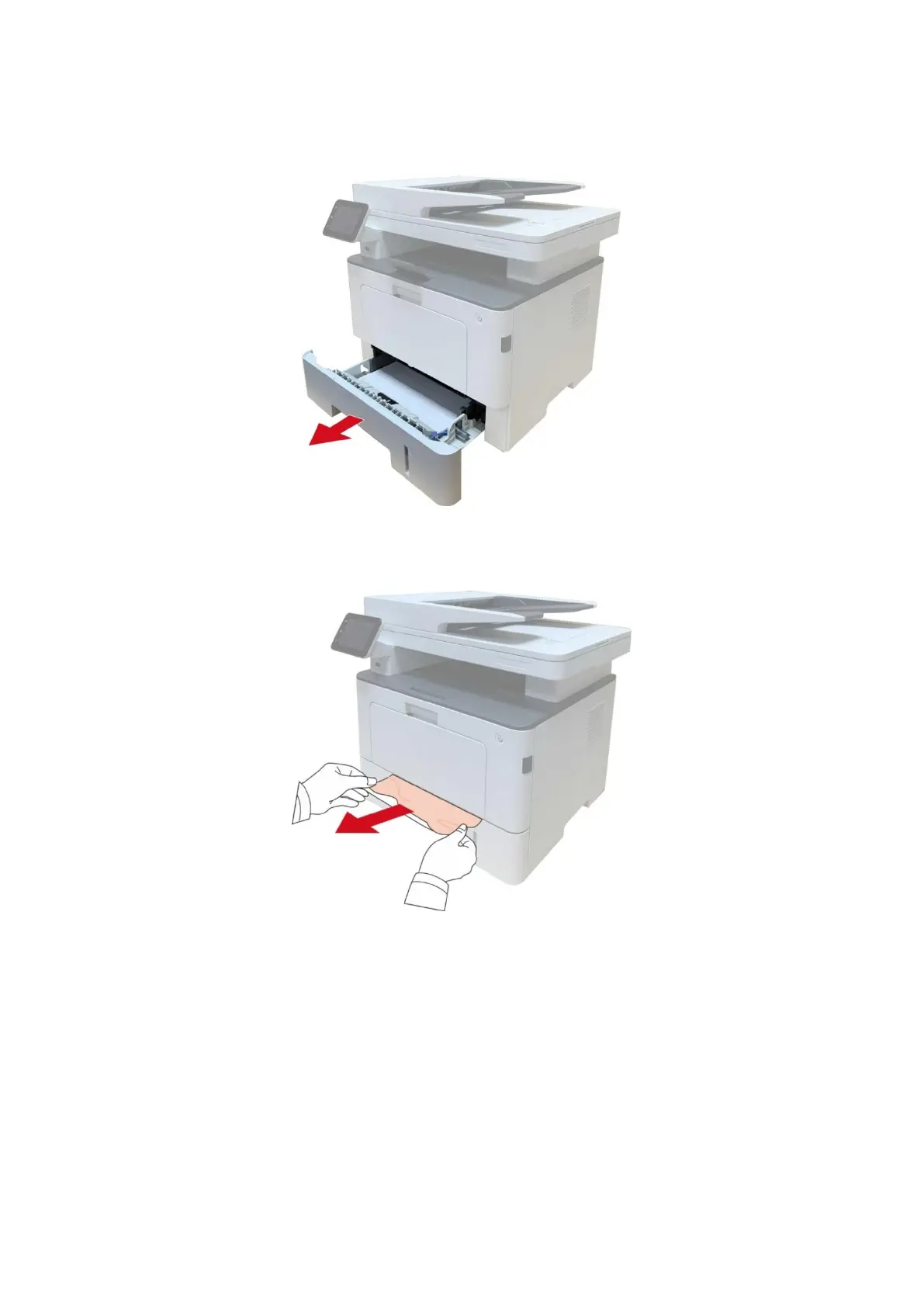 2. Gently pull the jammed paper out.