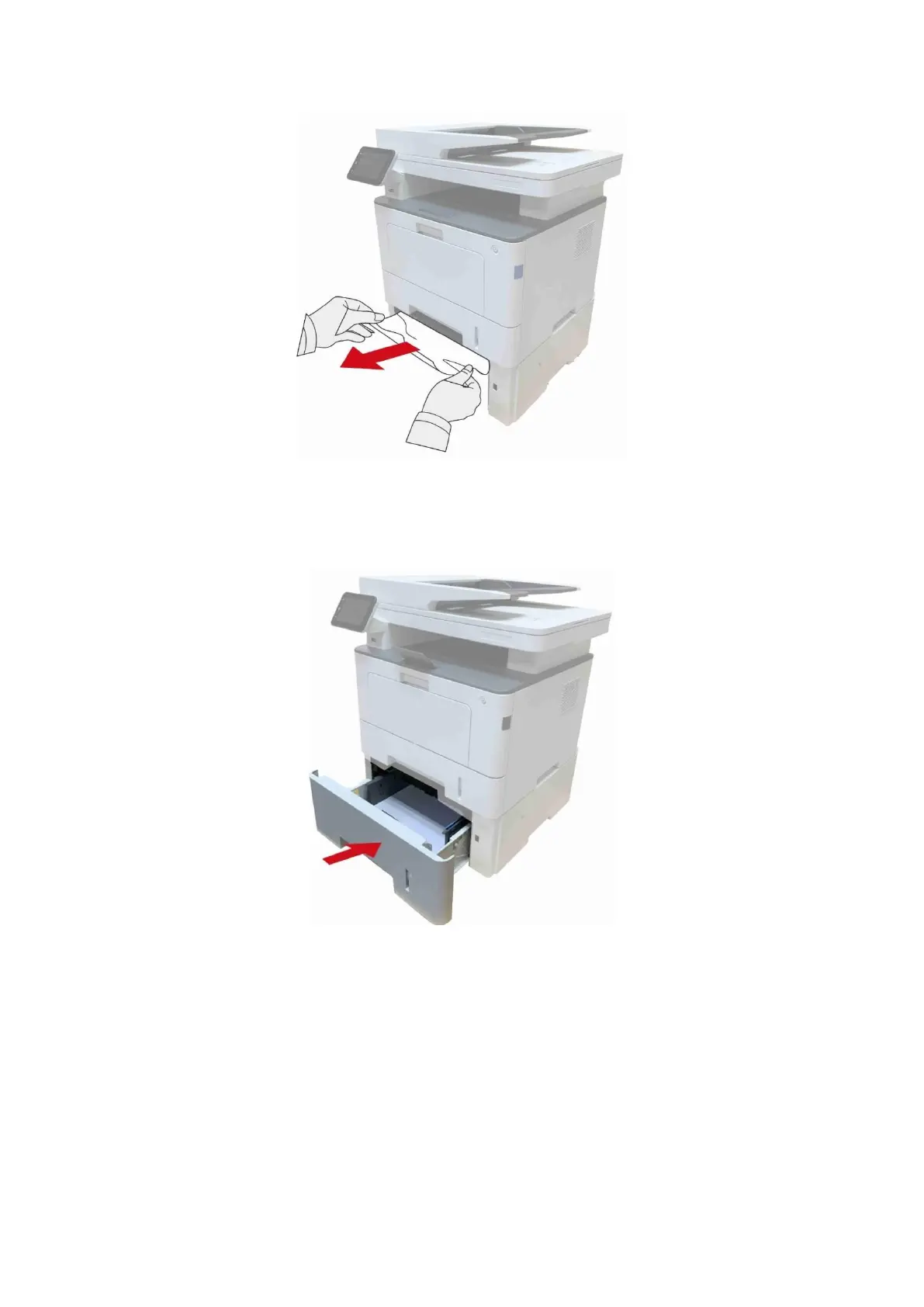 3. After removing the jammed paper, reinsert the optional tray into the printer, and the printer will