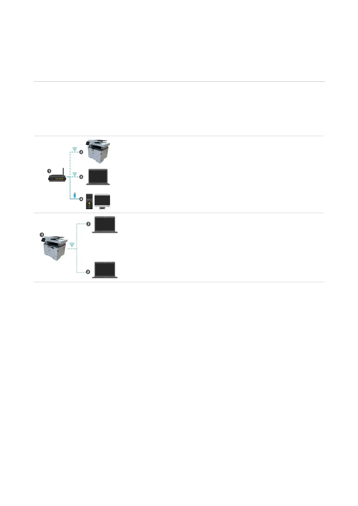 Based on the model, the printer model with Wi-Fi print function supports two types of wireless
