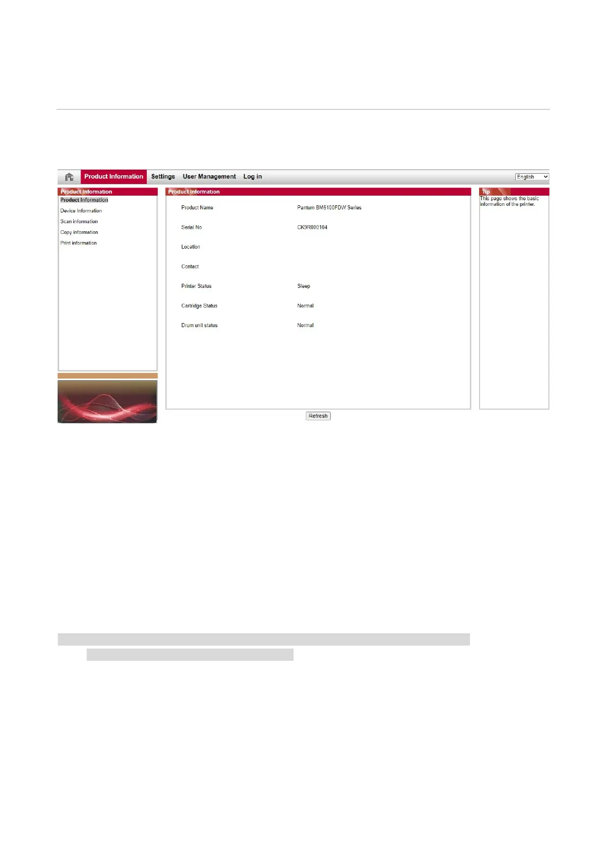 3. Input the IP address of printer in the address bar of Web browser to visit the Web server