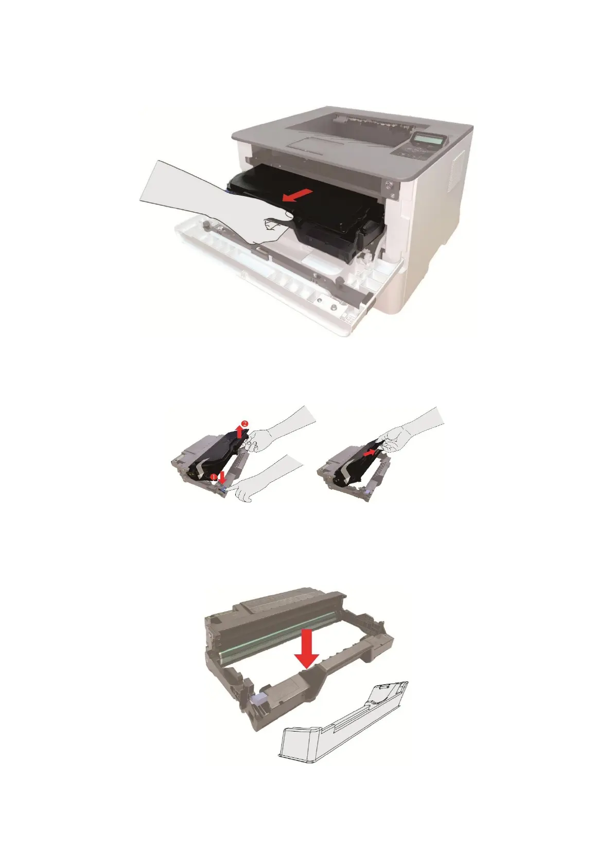 cartridge handle with right hand at the same time to take the toner cartridge out.