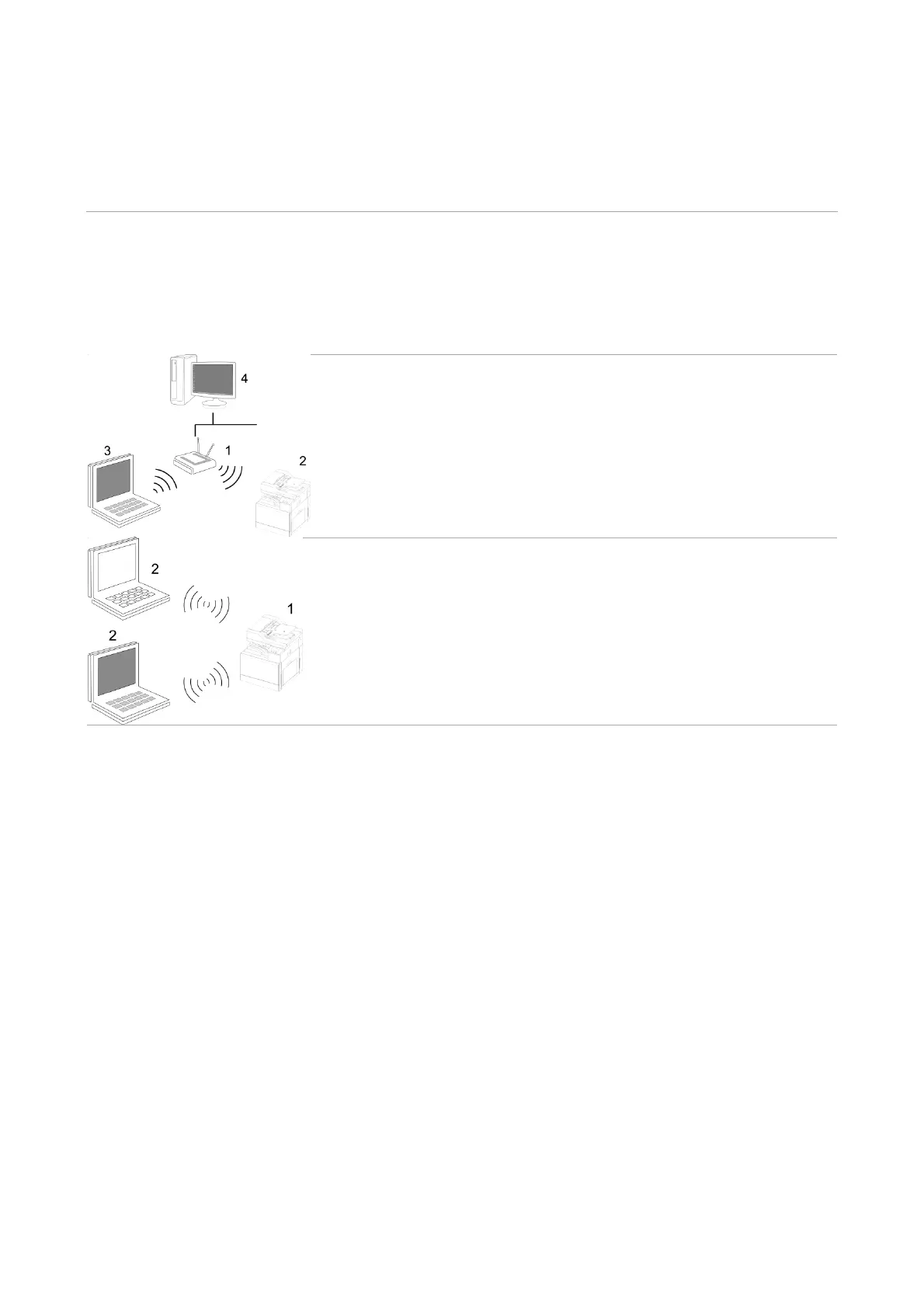 Printers equipped with Wi-Fi printing function support two types of wireless network connections,