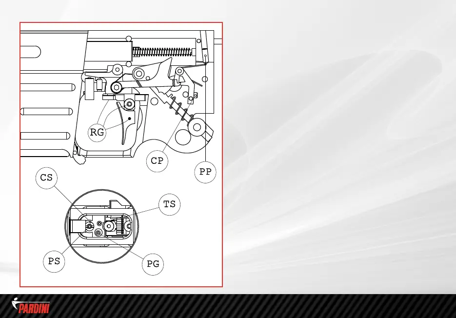 SCREW PG: This regulates the disconnector engagement on the sear.