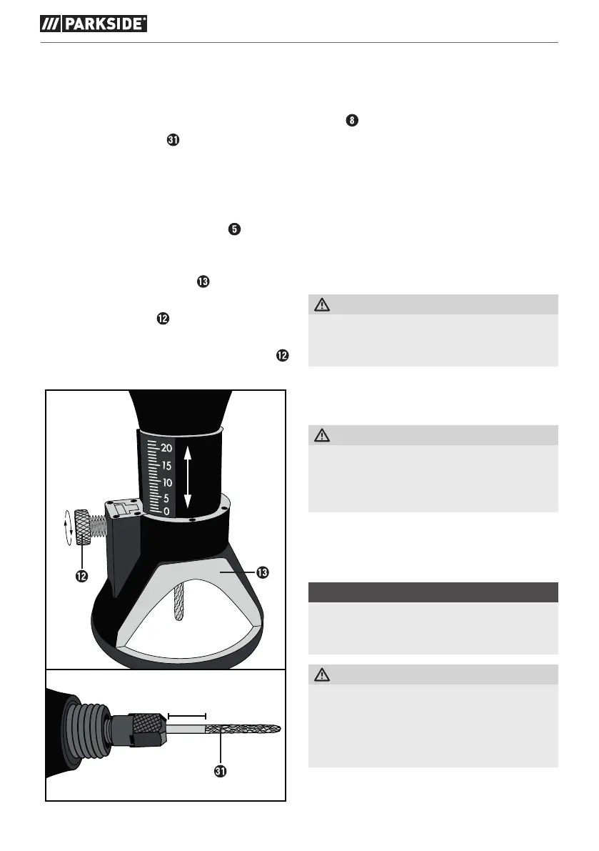 ♦ Zur Einstellung der richtigen Arbeitstiefe lösen Sie