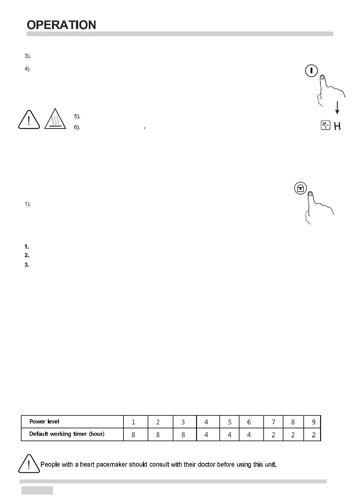 Note: When “H” is shown on display, although the hob is off, but the temperature of induction glass is still very high,