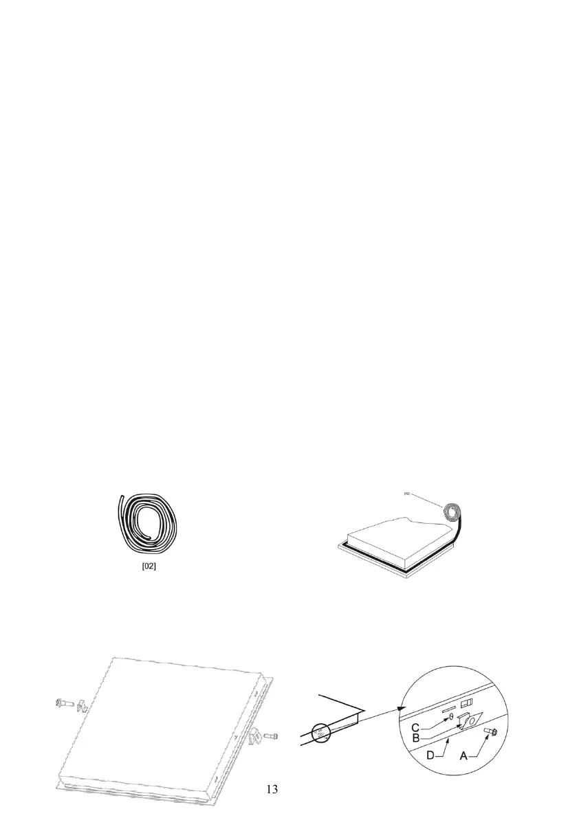 Stretch out and stick the supplied tape [02] along the underside edge of the hob,