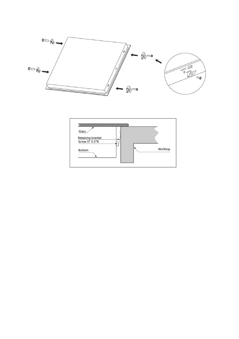 For HO39BC5, fix the hob brackets by screw four brackets on the bottom of