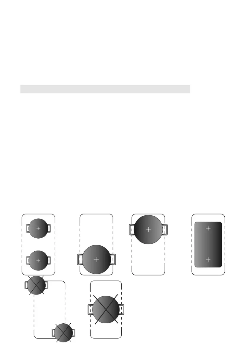 If your induction hob has Flexible zone function, the area can be used as a