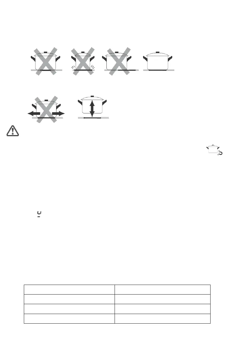 Always lift pans off the hob – do not slide, or they may scratch the glass.