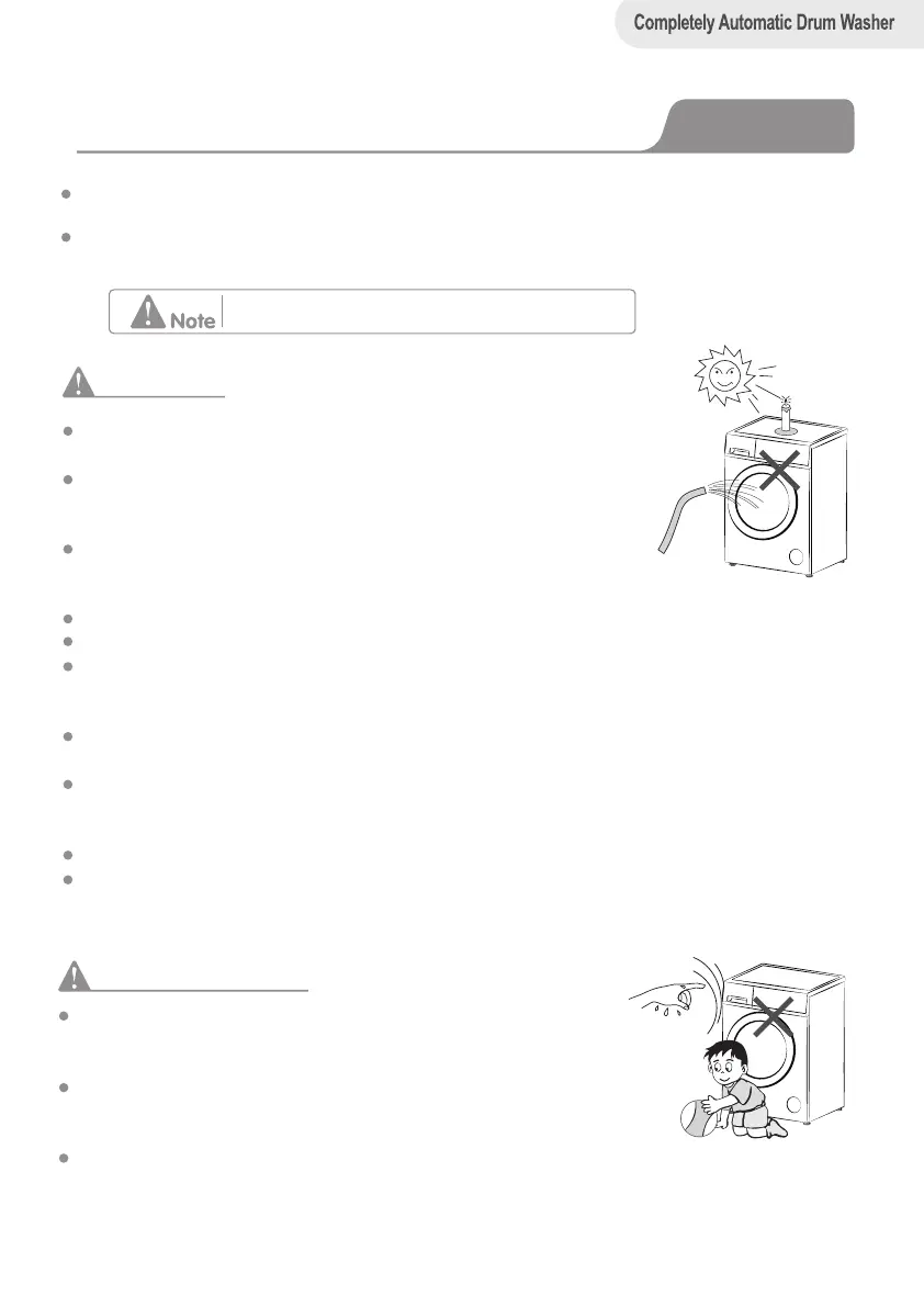 Do not install the washing machine in place where it suffers from the sun