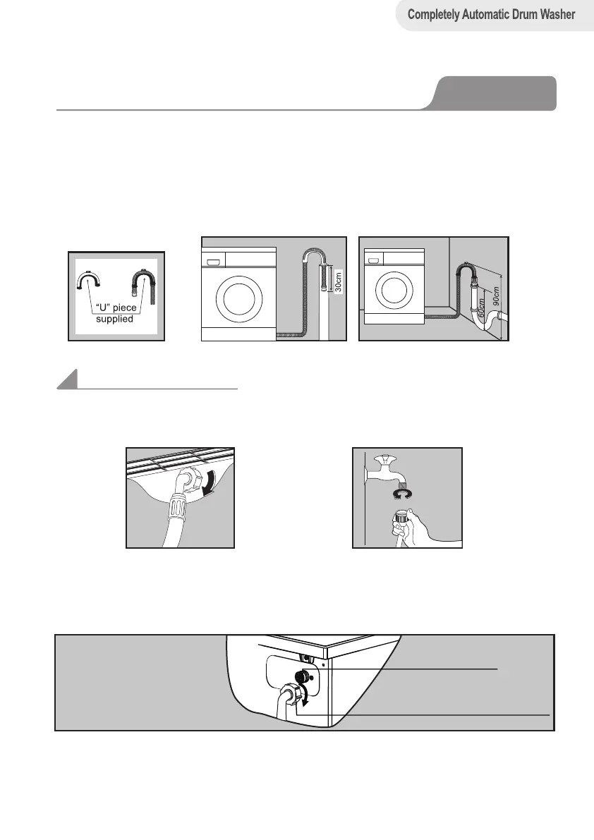 Firstly form a hook in the end of the drain hose using the “U” piece