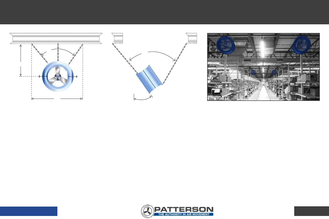 5. Connect the lengths of chain to the eyebolts on the factory assembled fan head using the chain connectors.