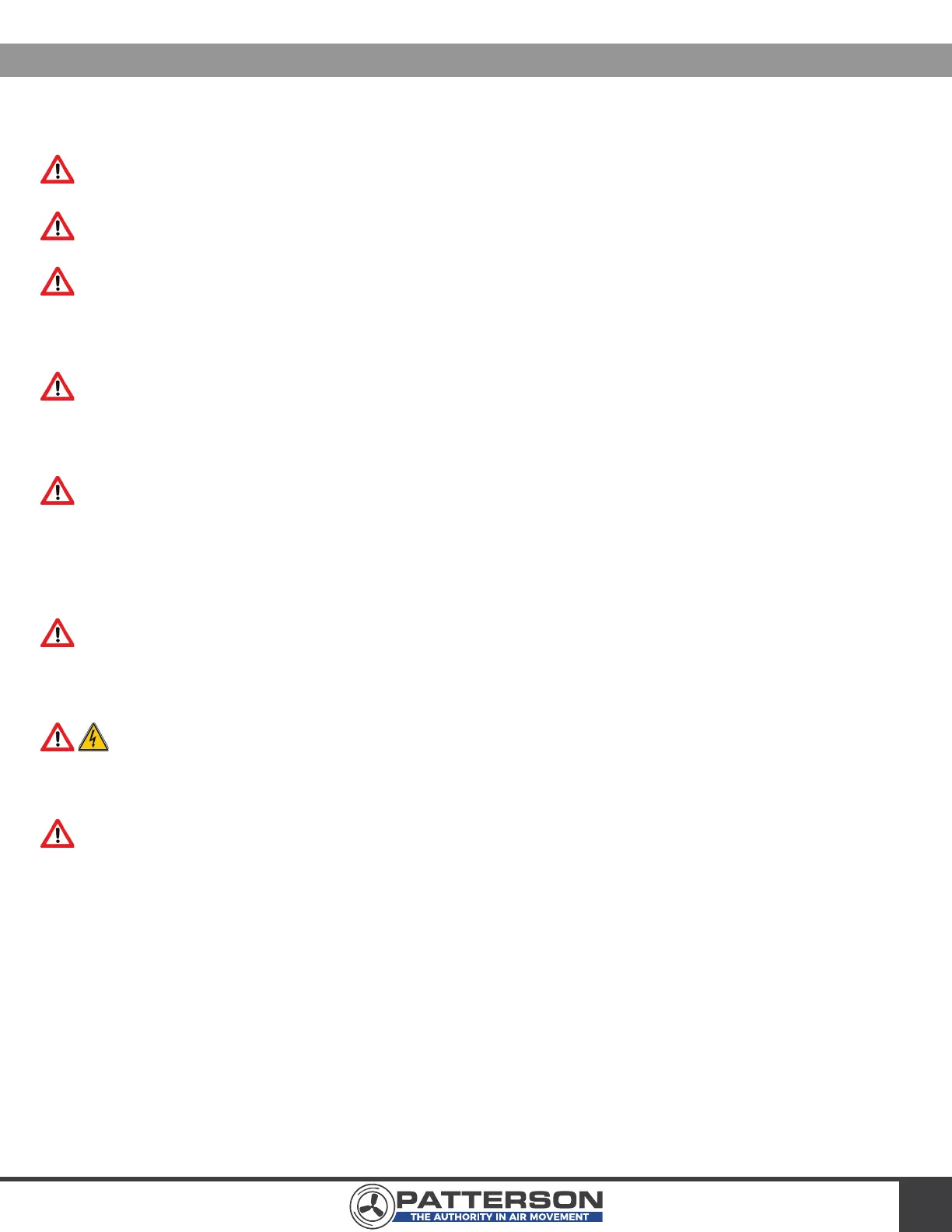 If unusual oscillating movement is observed, immediately stop using the fan and contact your Patterson Sales Rep at