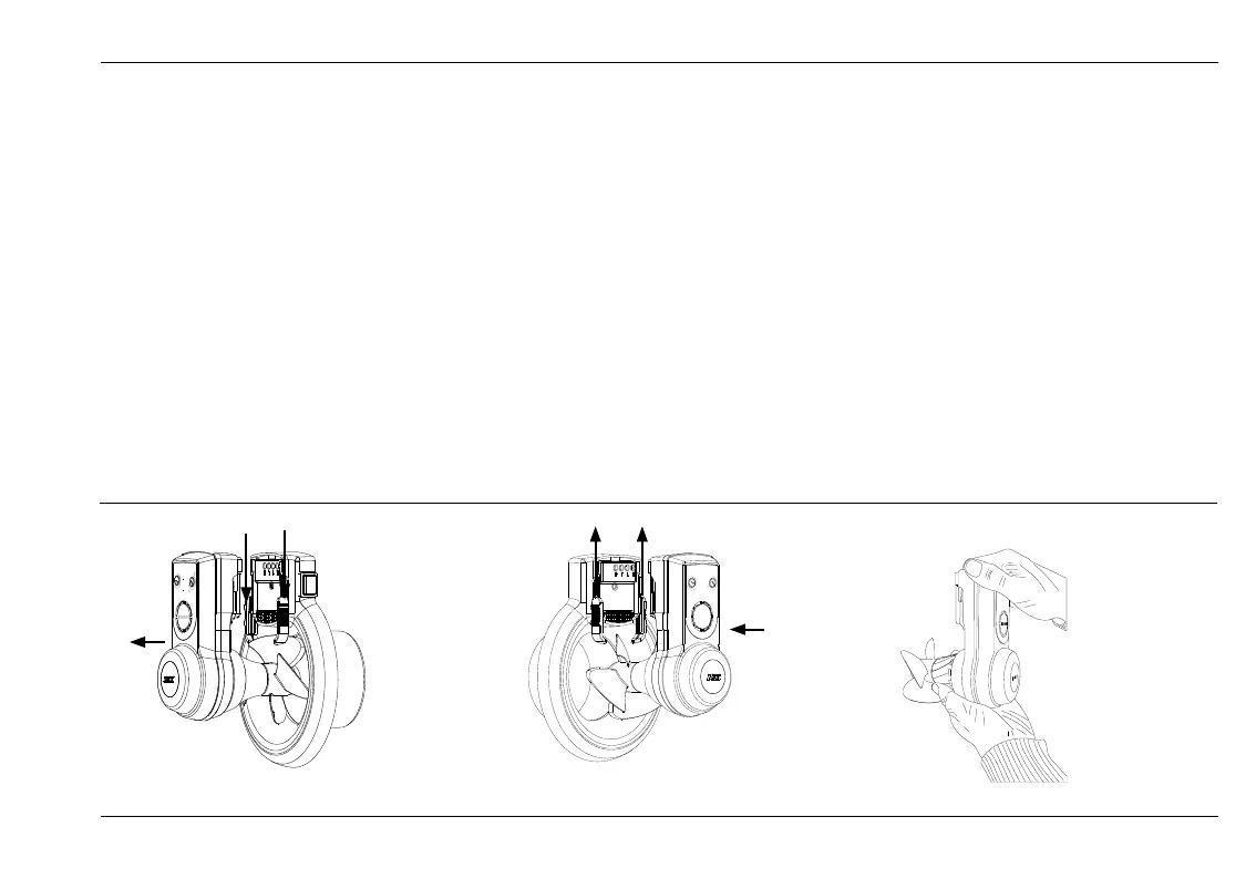 Lås motorenheten ved å presse opp begge