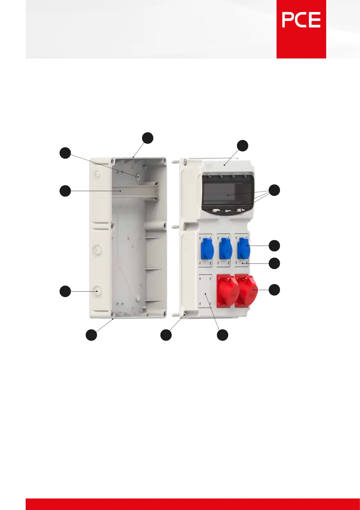 The FLEX empty enclosure consists of a lower part and an upper part. The enclosure upper part has a hinged
