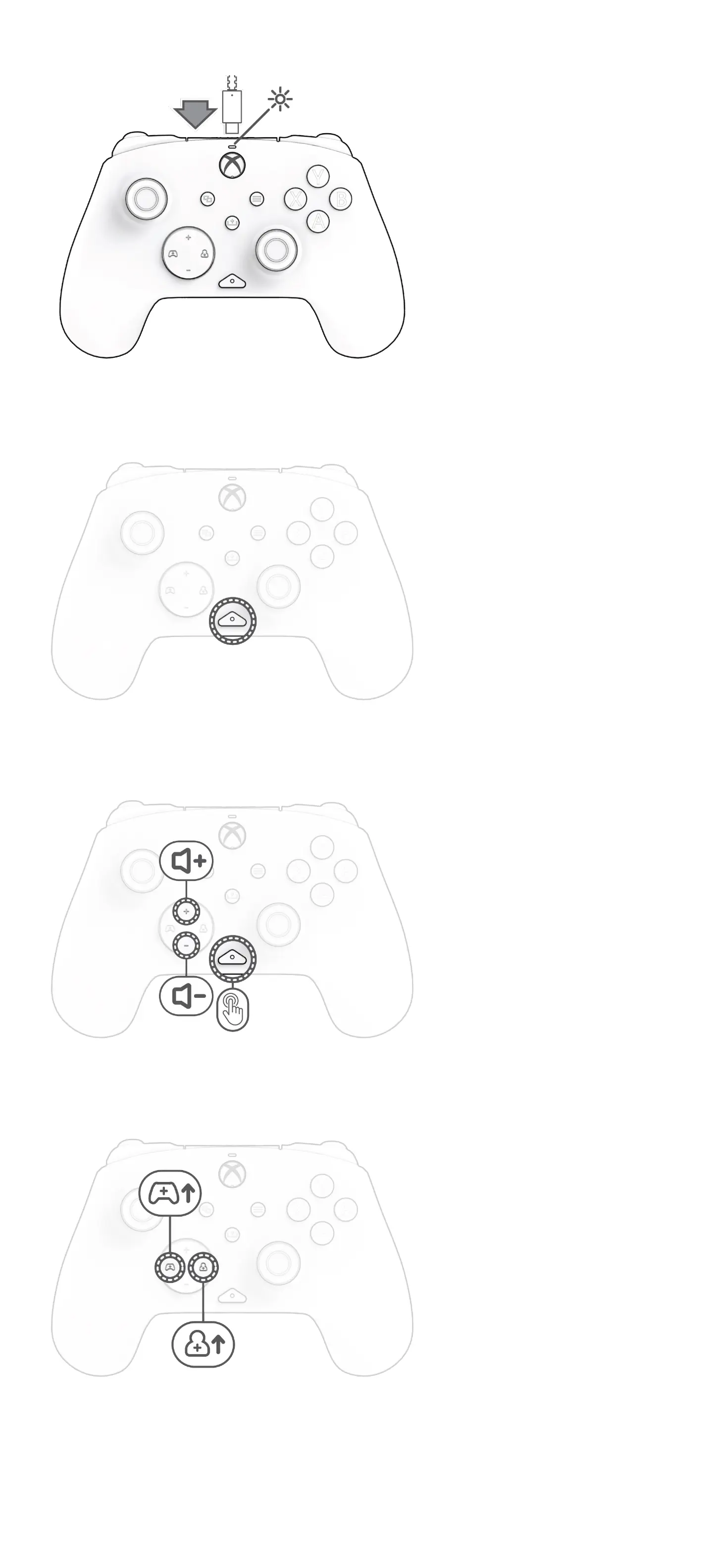 Branchez l’extrémité USB-C du câble sur la partie supérieure de la manette et l’extrémité USB sur votre console ou votre PC. La lumière au-dessus du