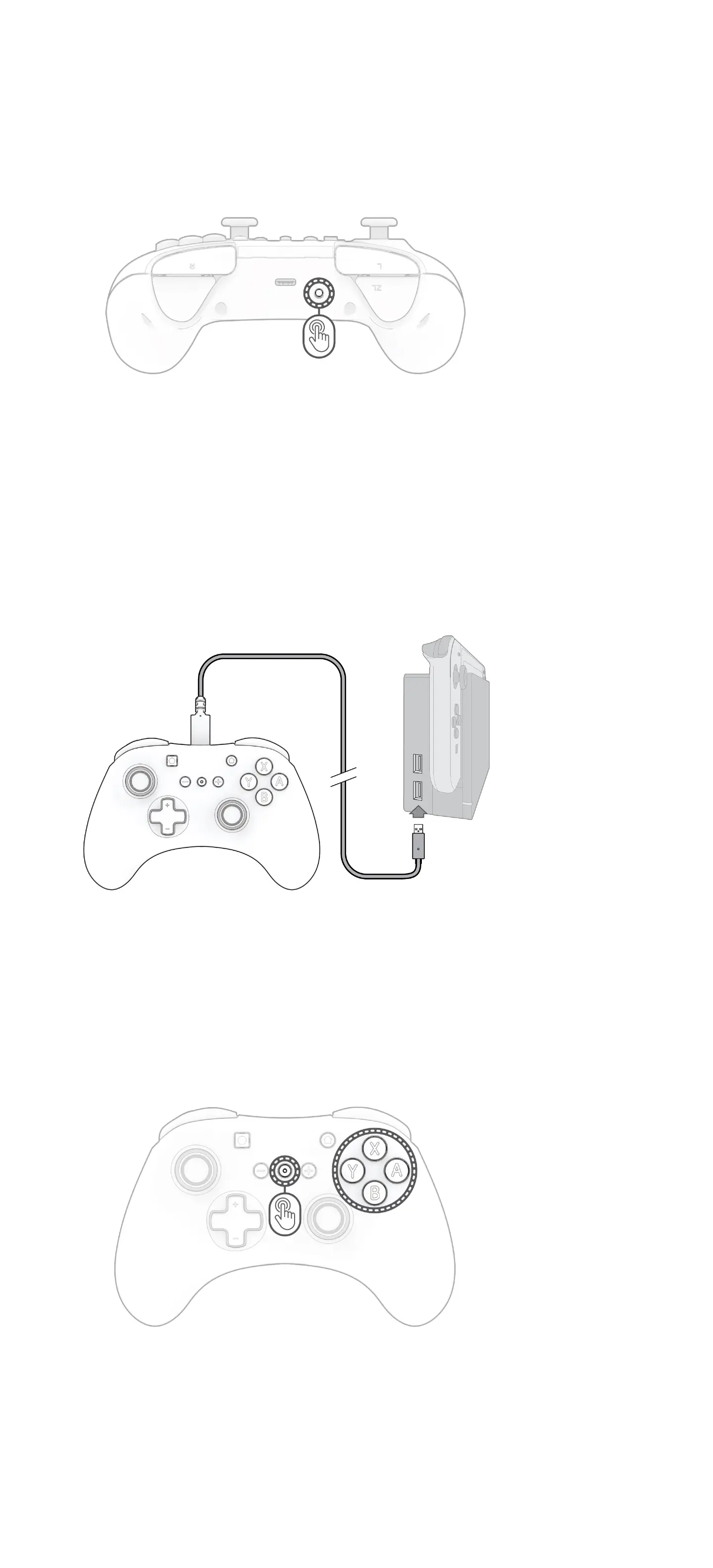 hold inne «funksjon»-knappen og D-pad til høyre, og koble USB-C-kabelen til kontrolleren.