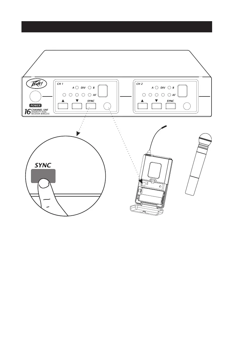 With the transmitter SYNC port exposed to the receiver, press SYNC