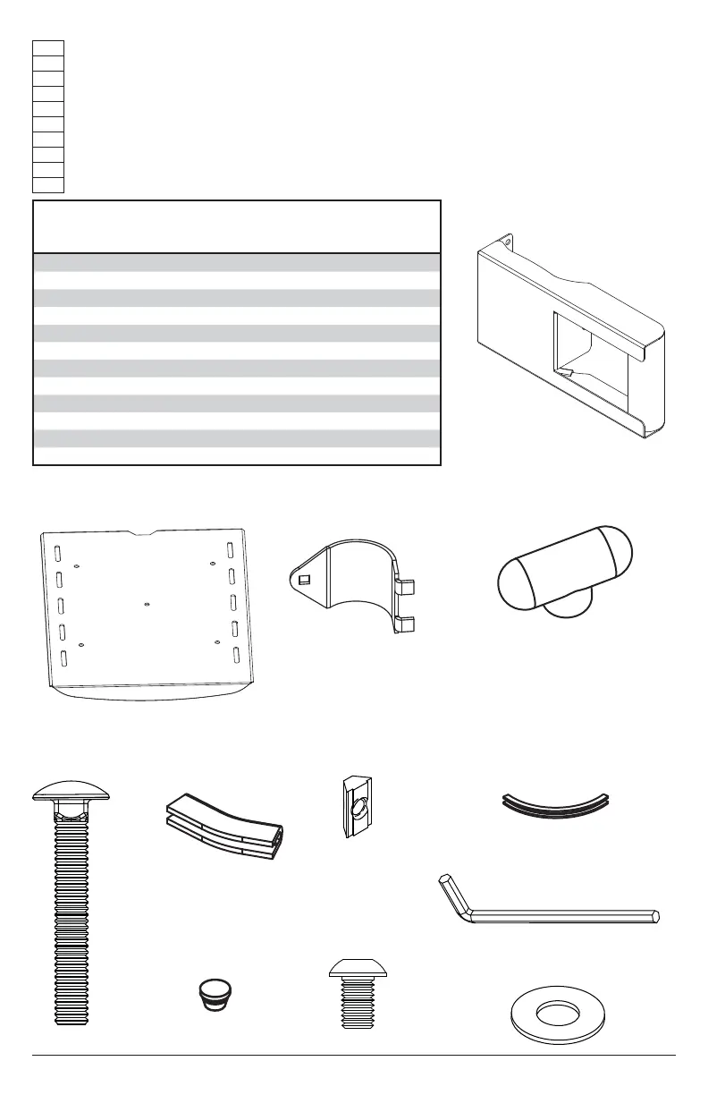 Teile (Achten Sie vor Beginn der Arbeiten darauf, dass alle unten abgebildeten Teile vorhanden sind).