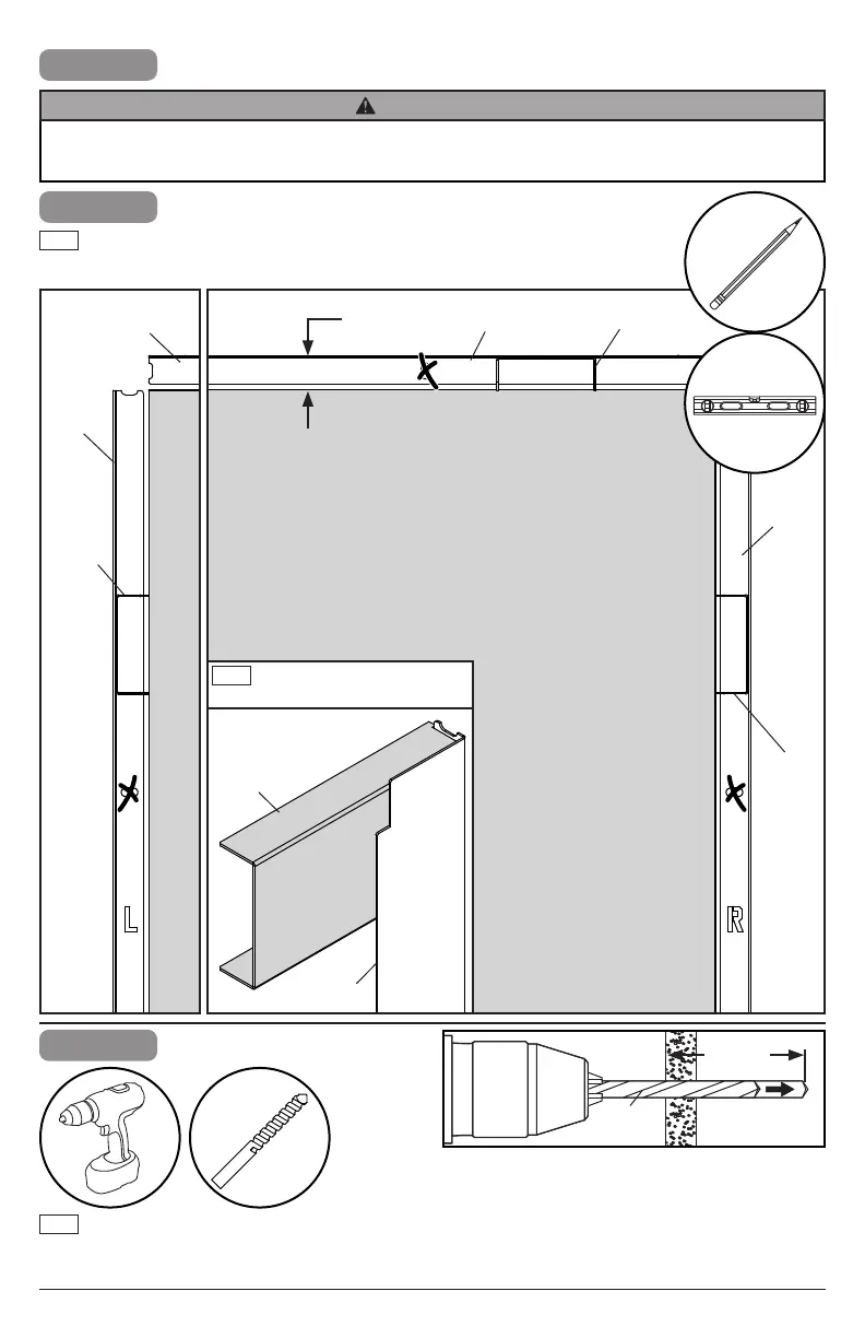 Align wall bracket with edge of video wall. Use spacer to set nal position.