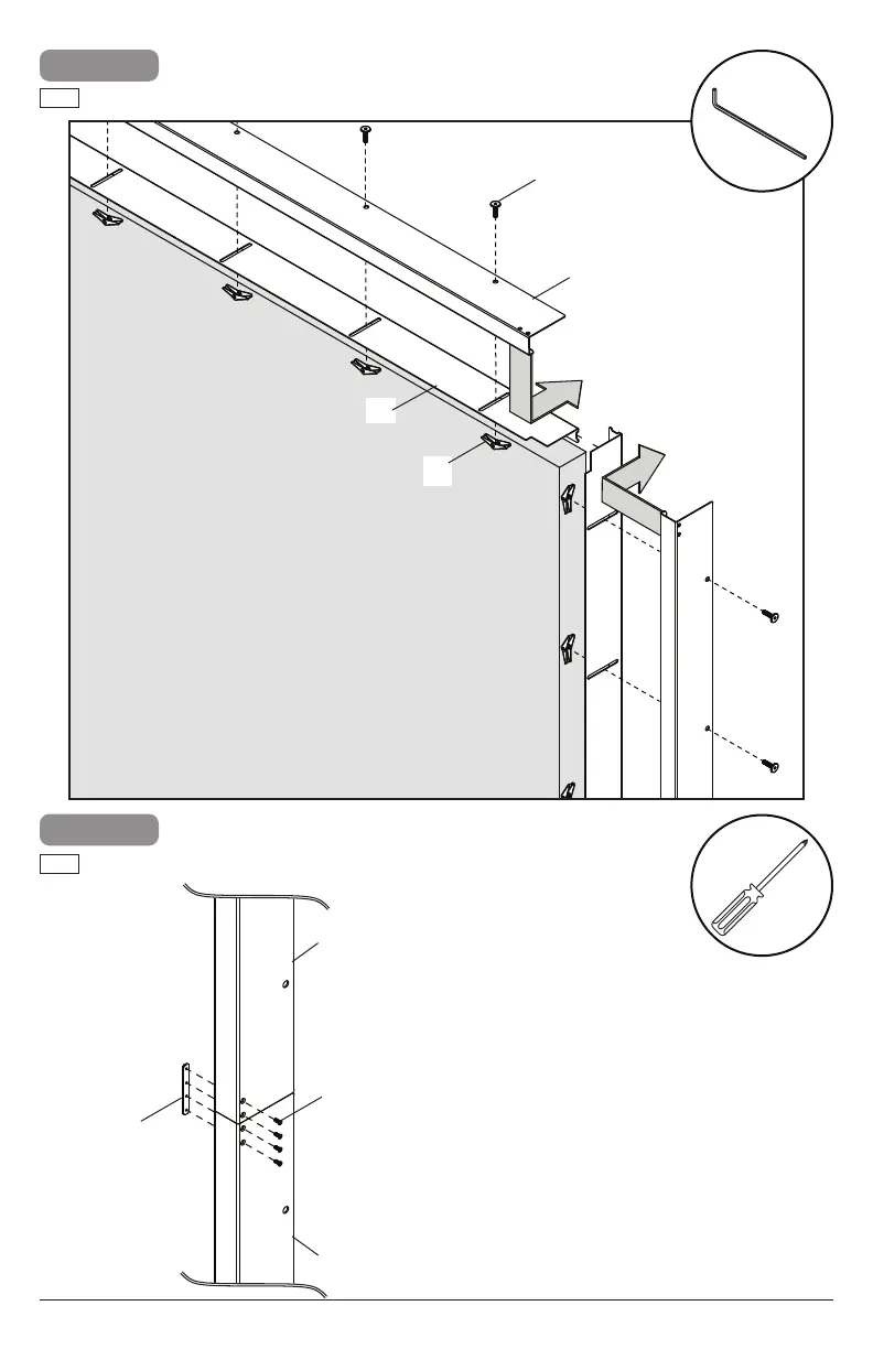 Attach covers with nut bar inside cover. Displays not shown for clarity.