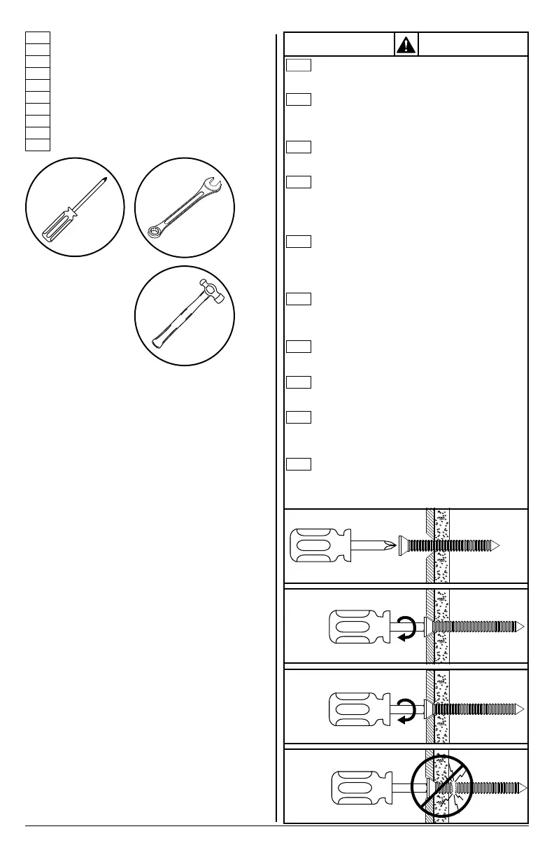 Pour bien serrer les vis : Serrez jusqu’à ce que