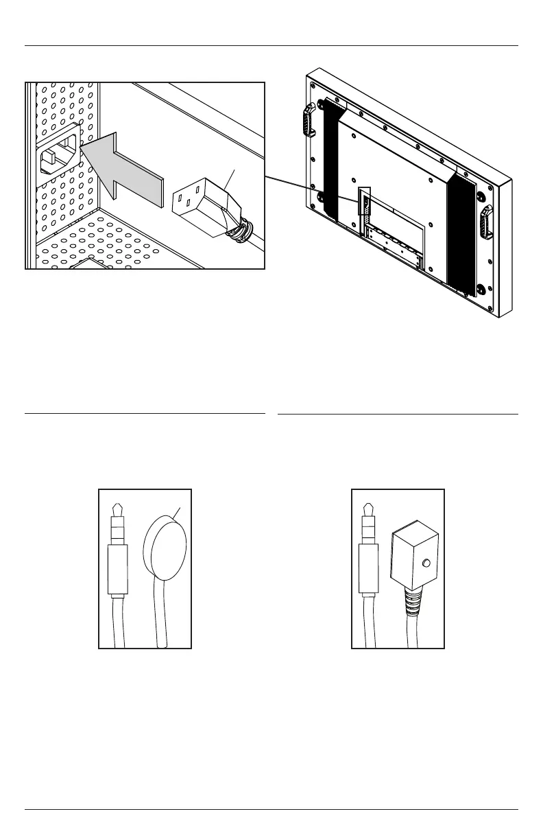 Insert female end of power cord (F,G,H) into power port located inside the input compartment.