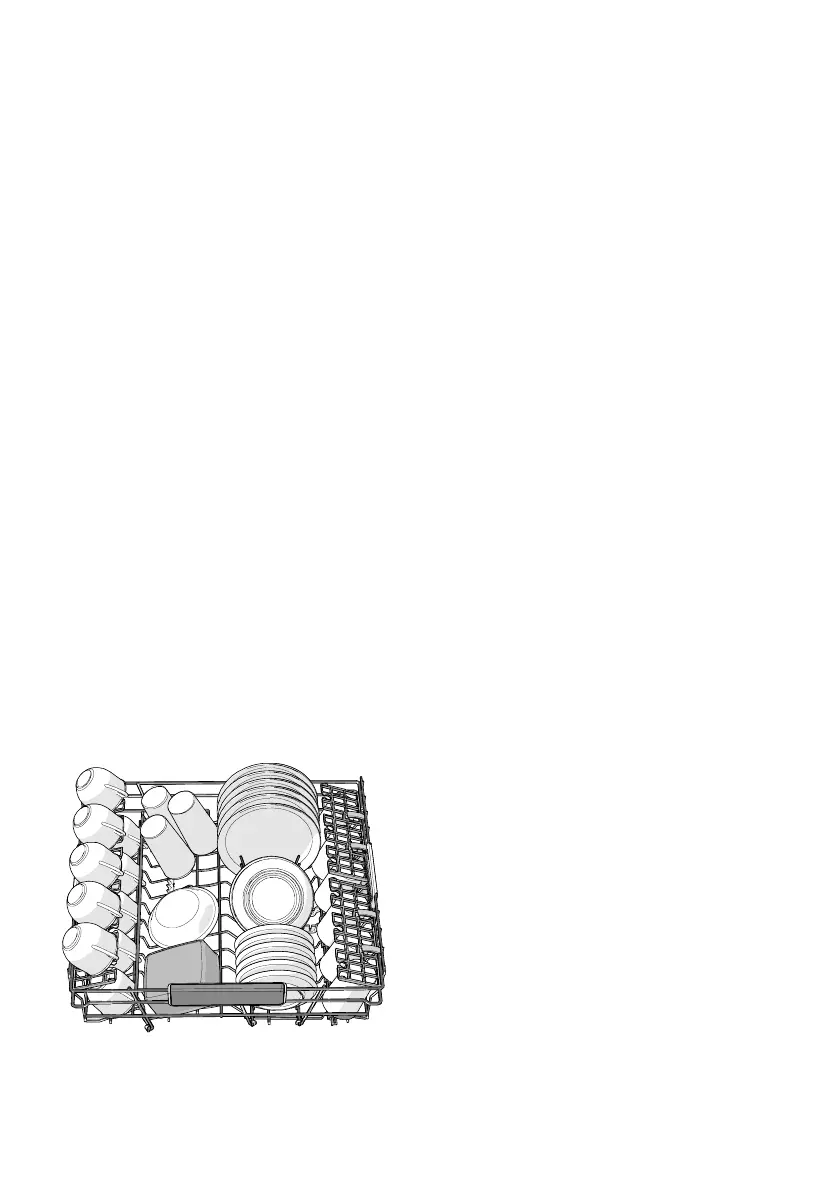• Plaats vaat met holtes, zoals kopjes, zo dat het spoelwater eruit loopt. Dit is ook belangrijk voor