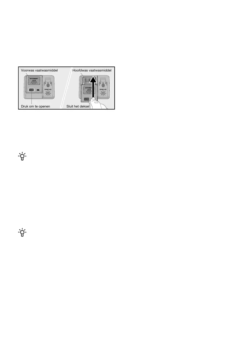 Het vaatwasmiddelbakje moet droog zijn wanneer er vaatwasmiddel in wordt gedaan. Er is een bakje