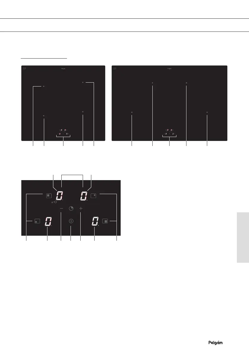 ▷ power indication / residual heat indicator/ point for active cooking timer indication